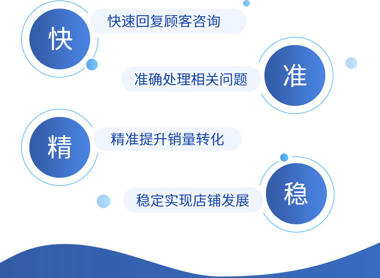 作为全国提升维护网店DRS第三方公司中的领航企业,利用先进的人工智能AI技术将软件与客服完美结合。优质的技术团队通过开发软件,掌握网店动态数据并诊断网店现有问题,有效提升网店DSR,可信度安全性更有保障。